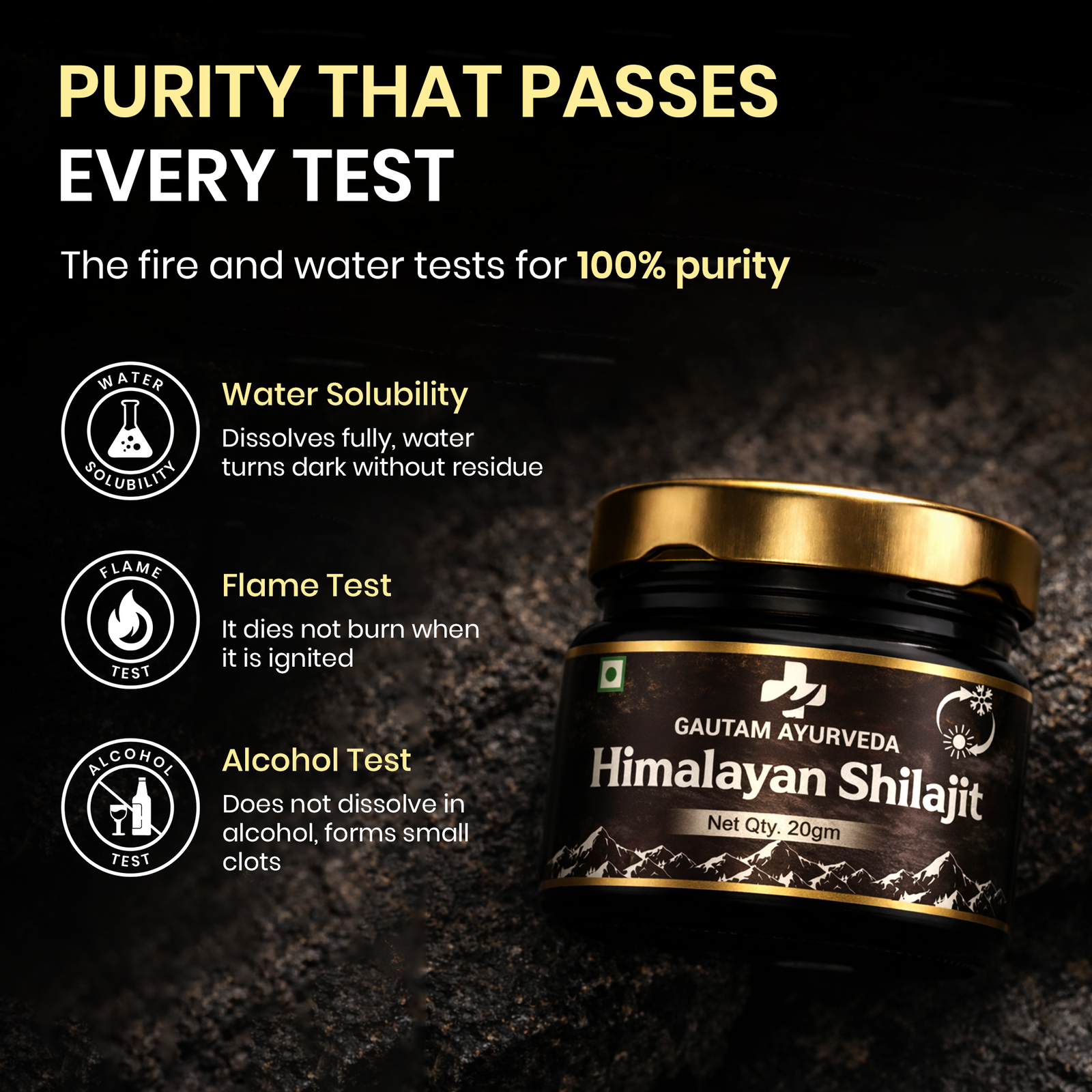 Pure Shilajit dissolves fully without residue.