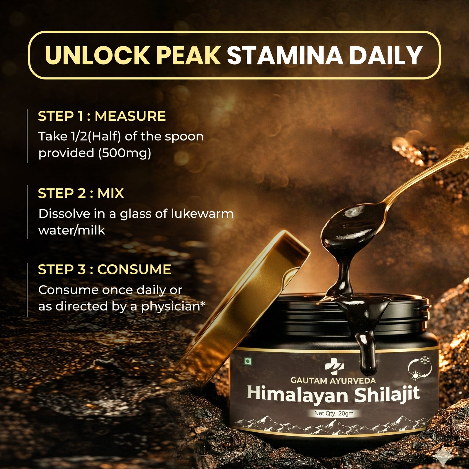 Pure Himalayan Shilajit Resin rich in fulvic acid and minerals that support energy, recovery, focus, and overall male vitality.